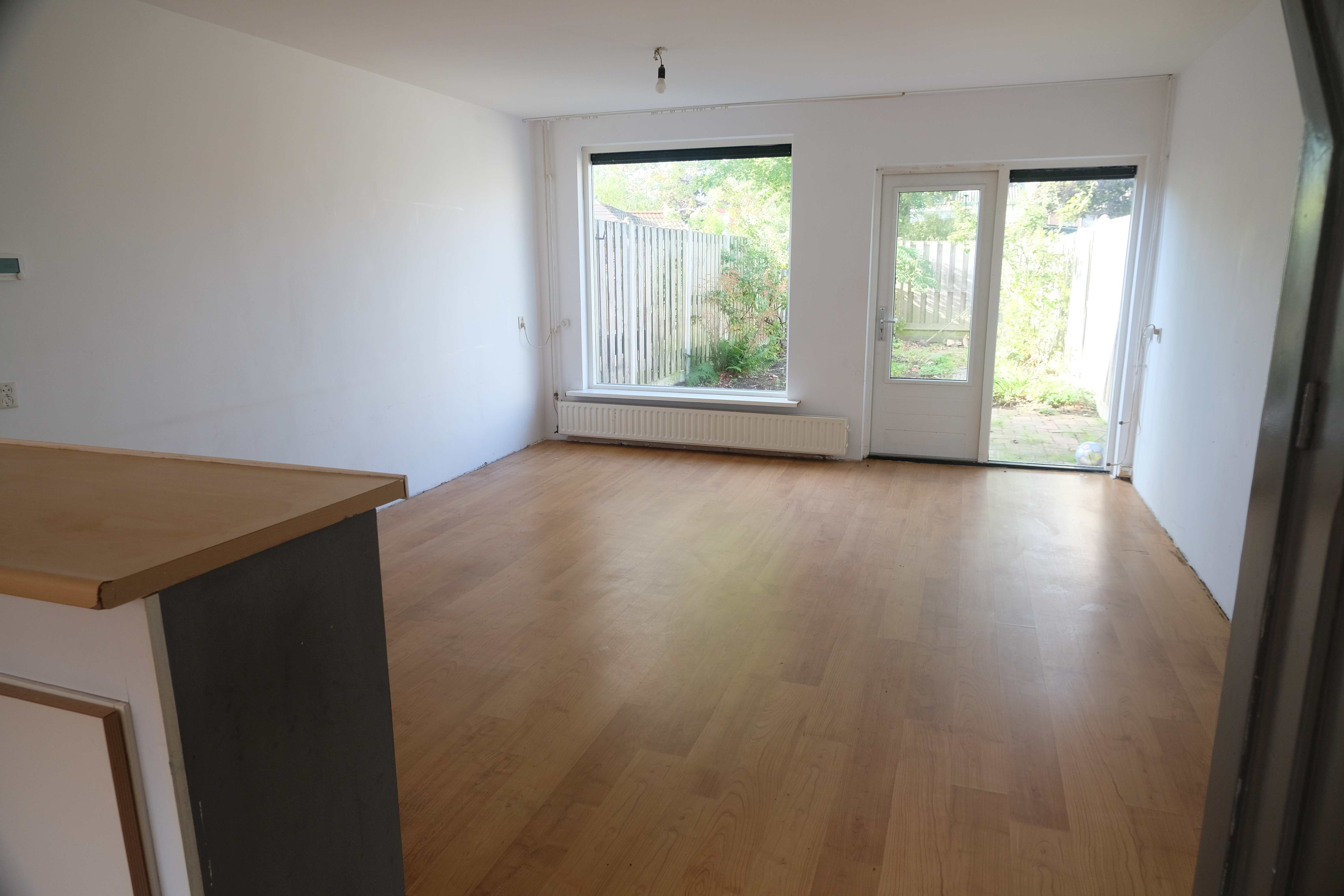 Entree; hal met toilet en meterkast; open keuken; woonkamer met deur naar de tuin.