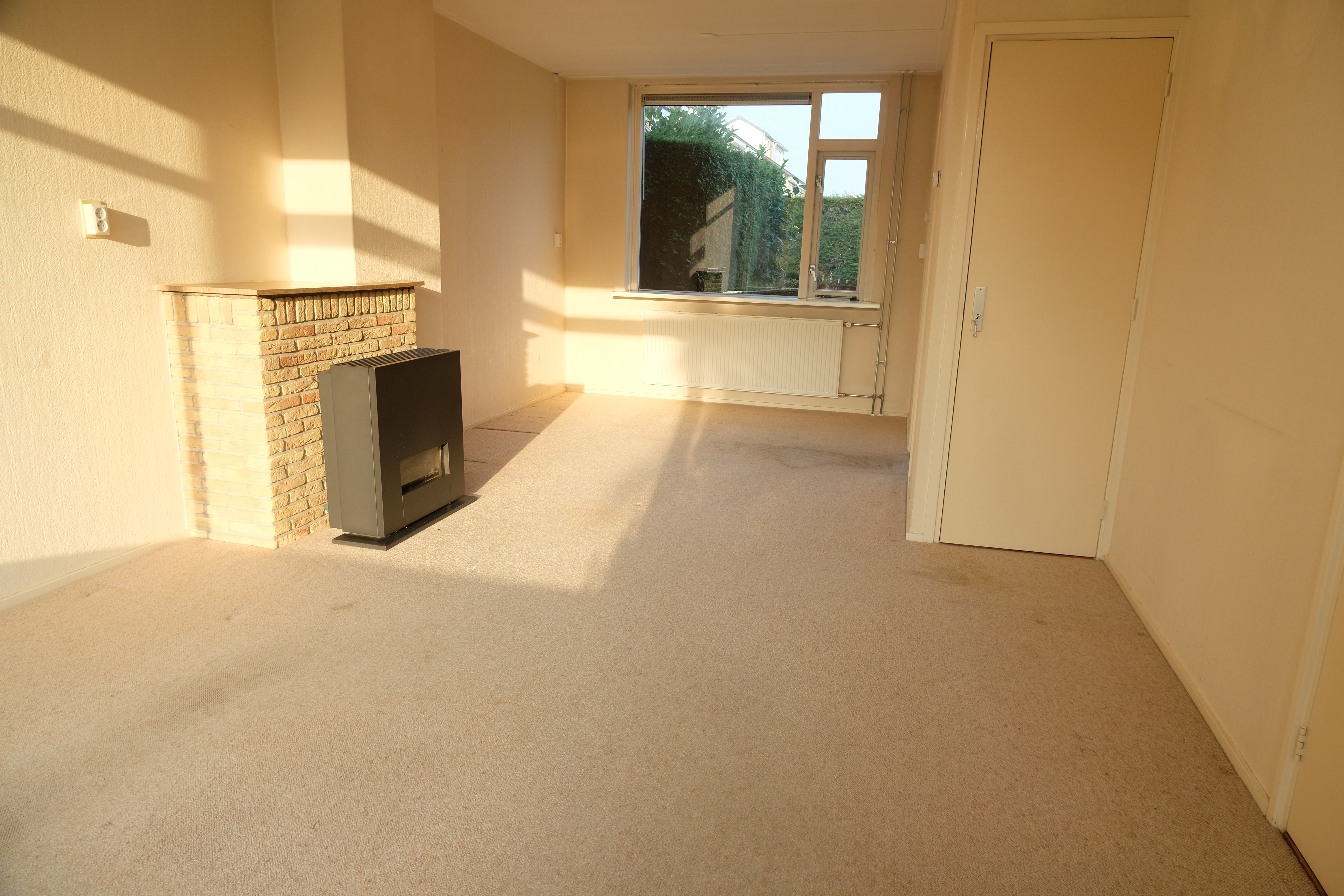 Entree; hal met toilet en meterkast; woonkamer; keuken met deur naar de tuin.