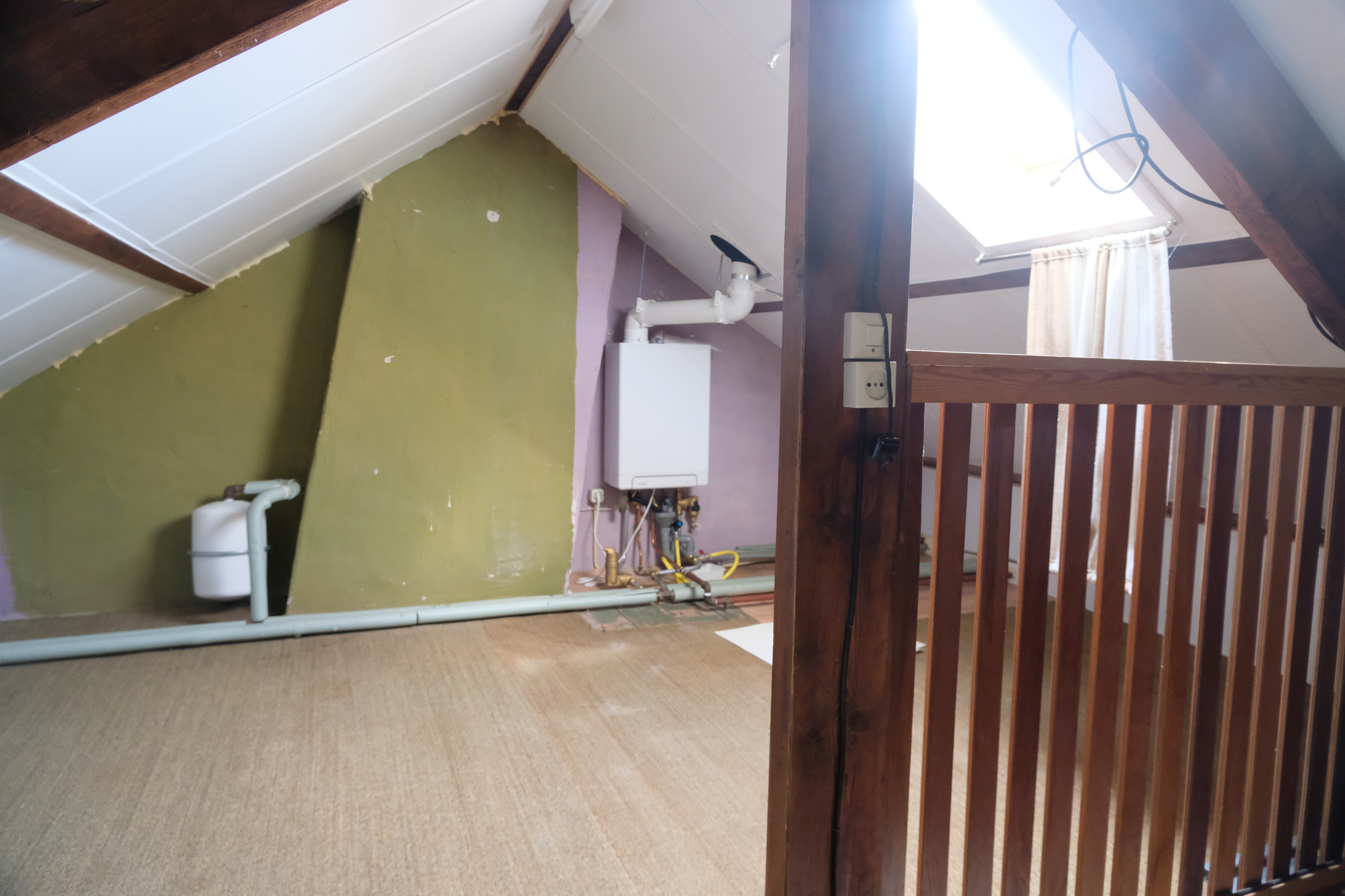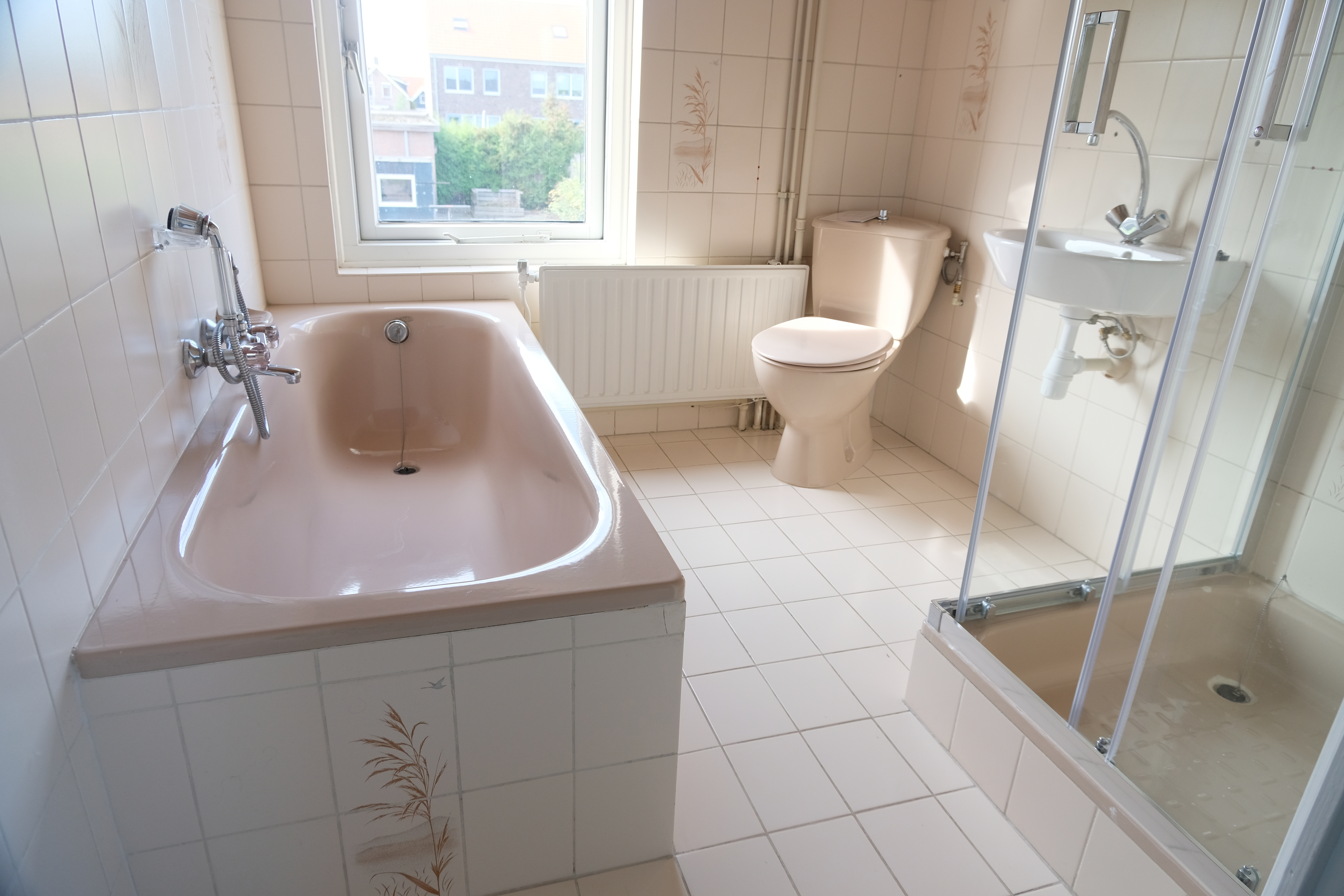 1e verdieping: 2 slaapkamers; ruime bergkast; badkamer met ligbad, douche, toilet en wastafel.