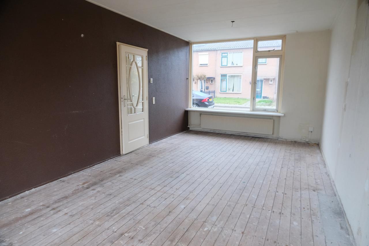 Entree; hal met toilet en meterkast; woonkamer; keuken met deur naar de tuin.