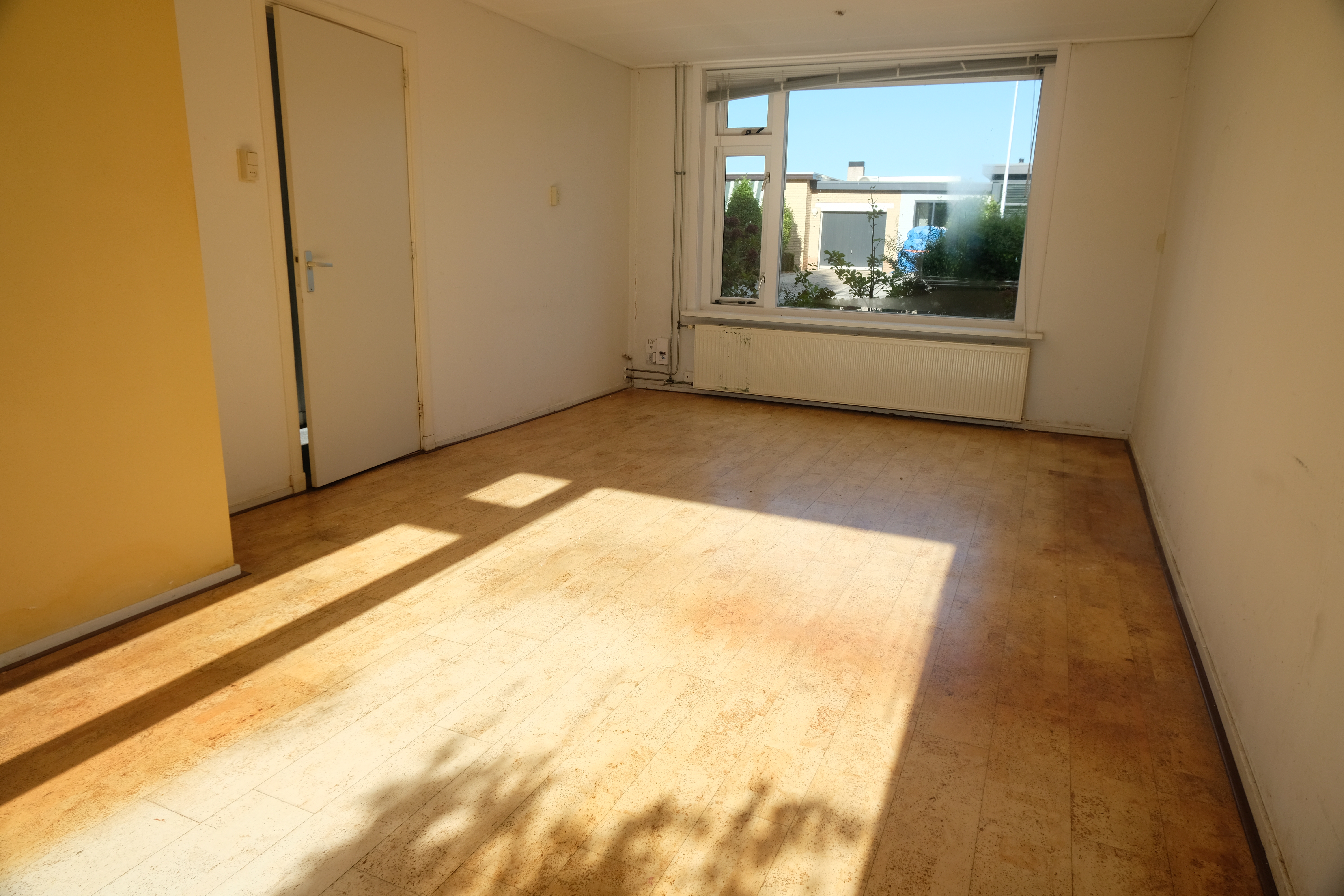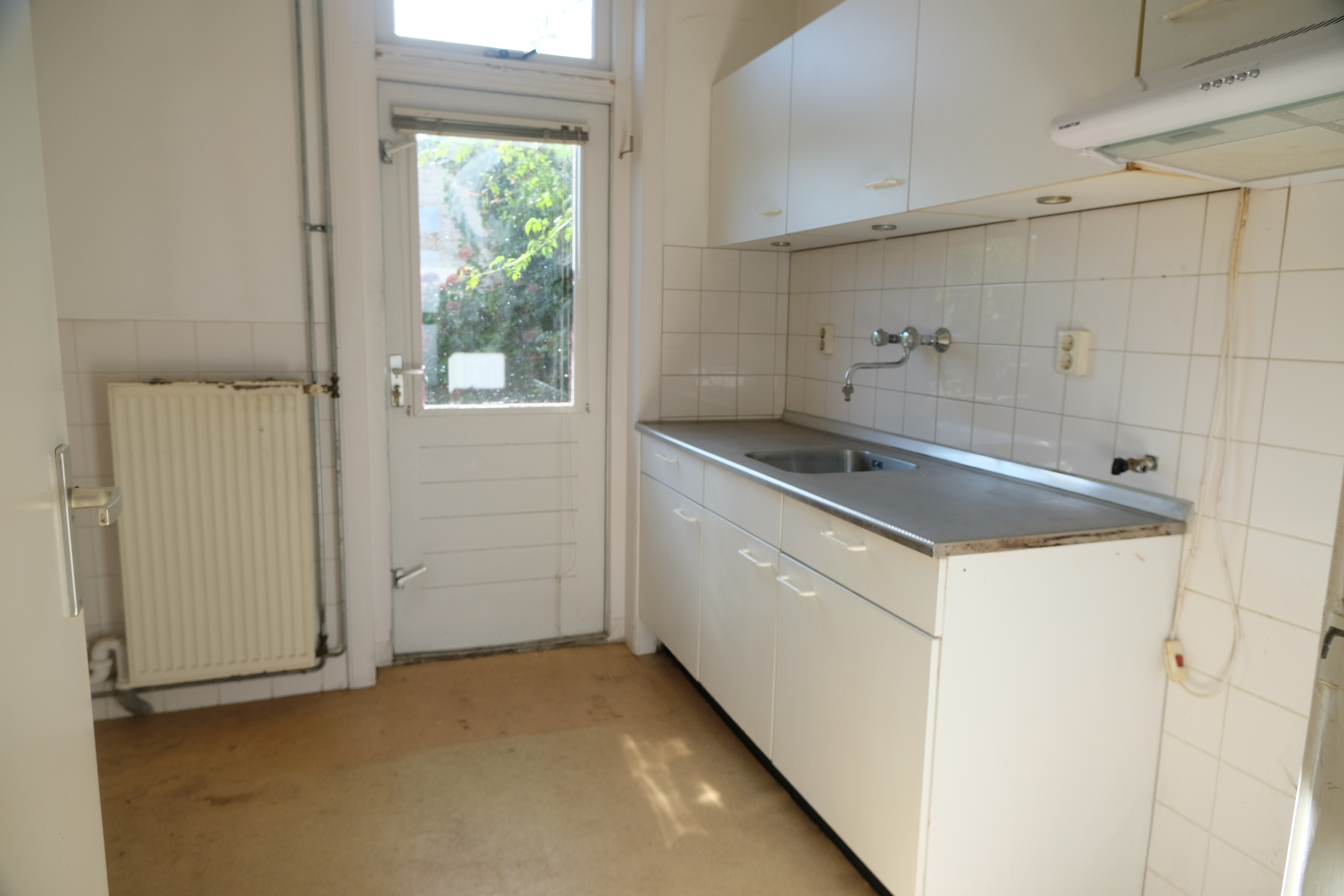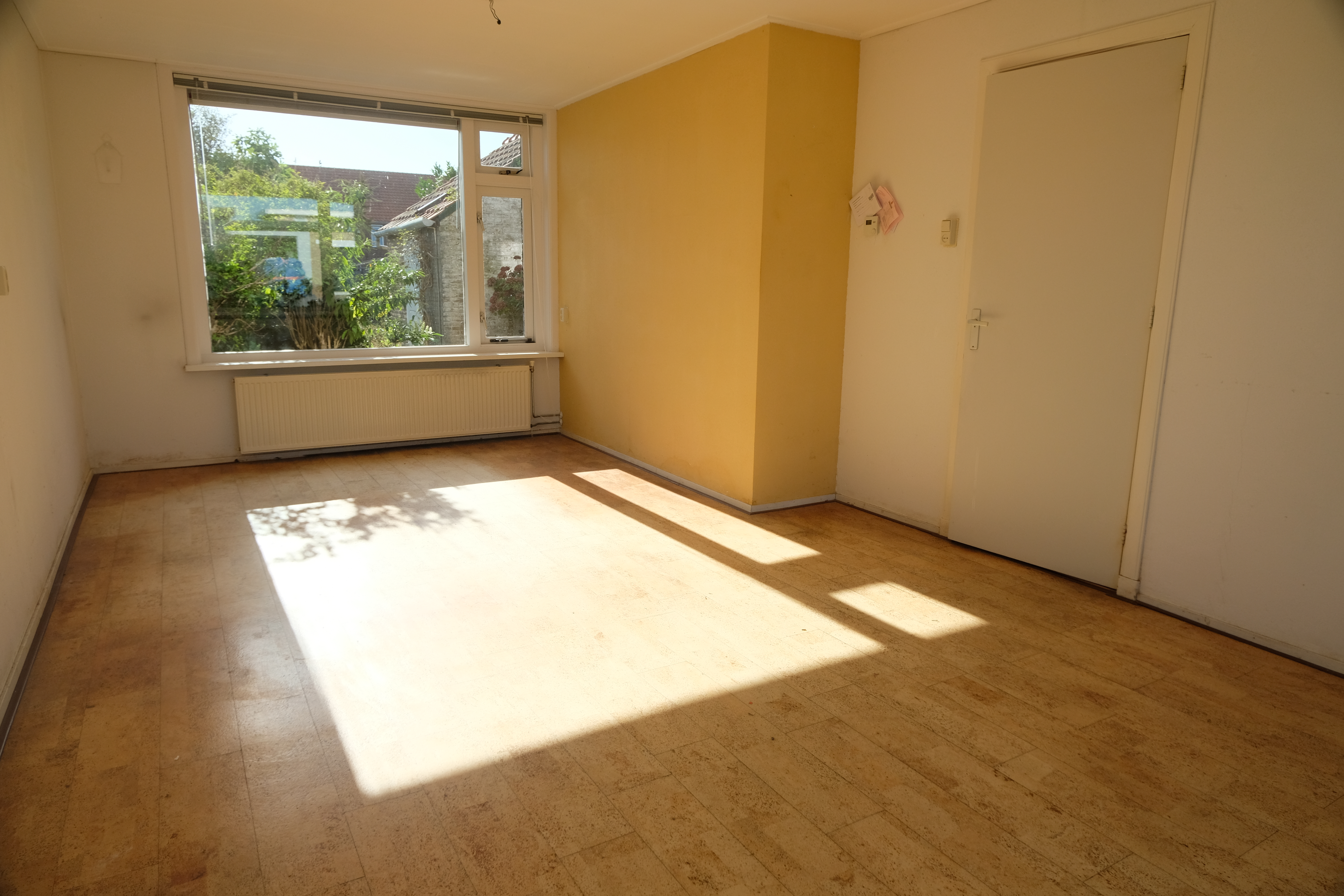 Entree; hal met toilet en trapkast; woonkamer; keuken met deur naar de tuin