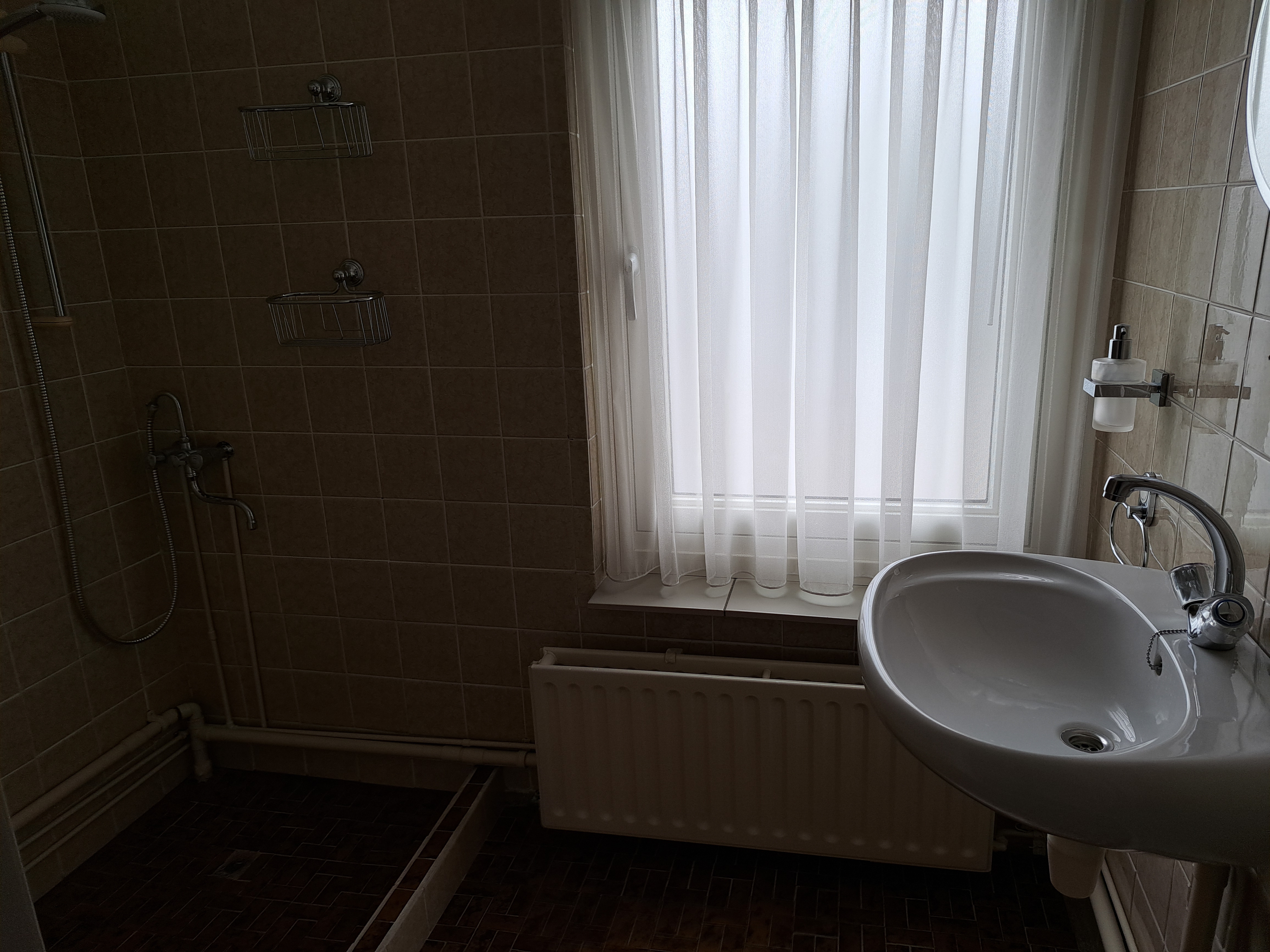 1e verdieping; 3 slaapkamers; badkamer met douche en wastafel.