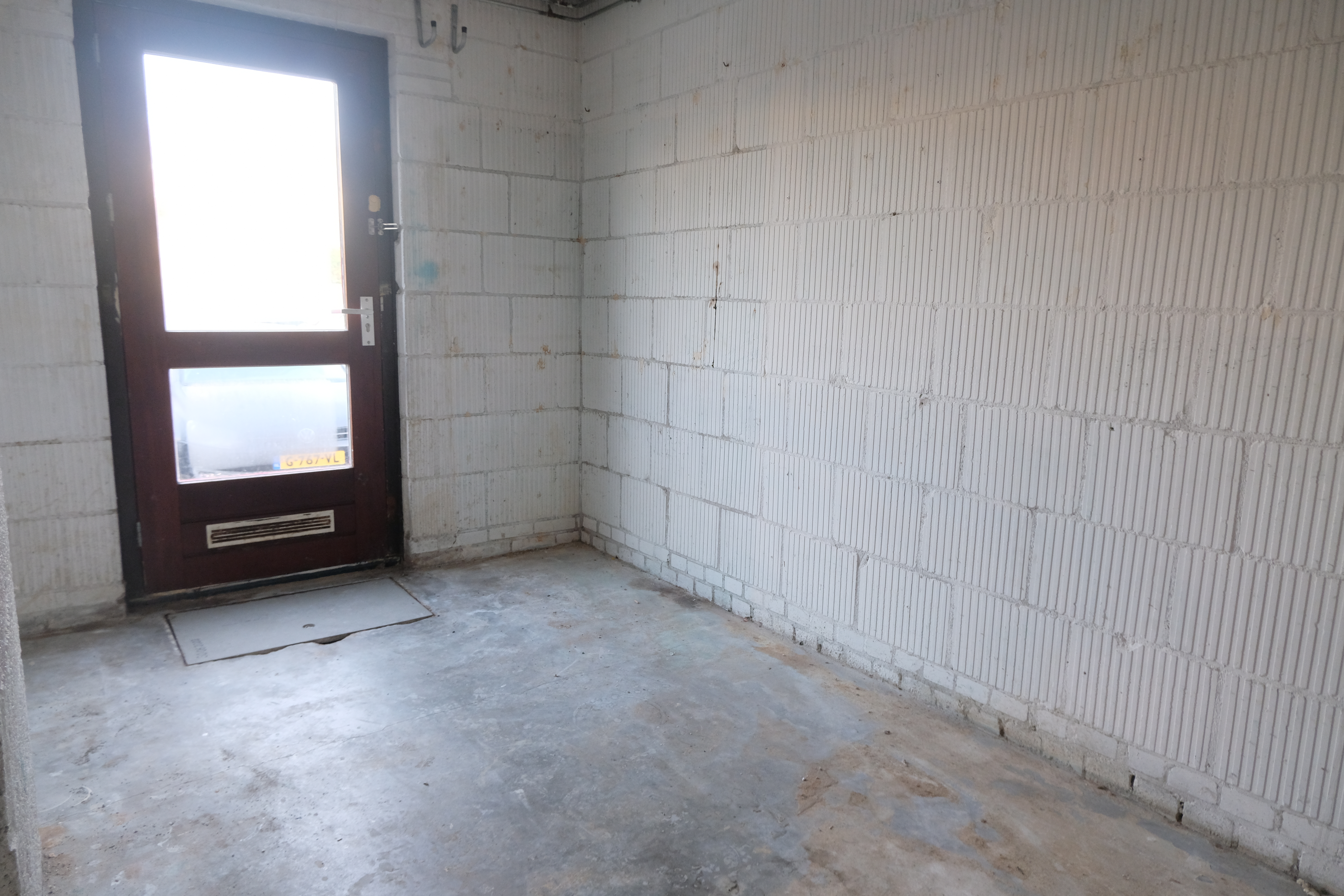 Entree; hal met toilet en deur naar de berging; inpandige berging met cv-opstelling; woonkamer met deur naar de tuin; open keuken.