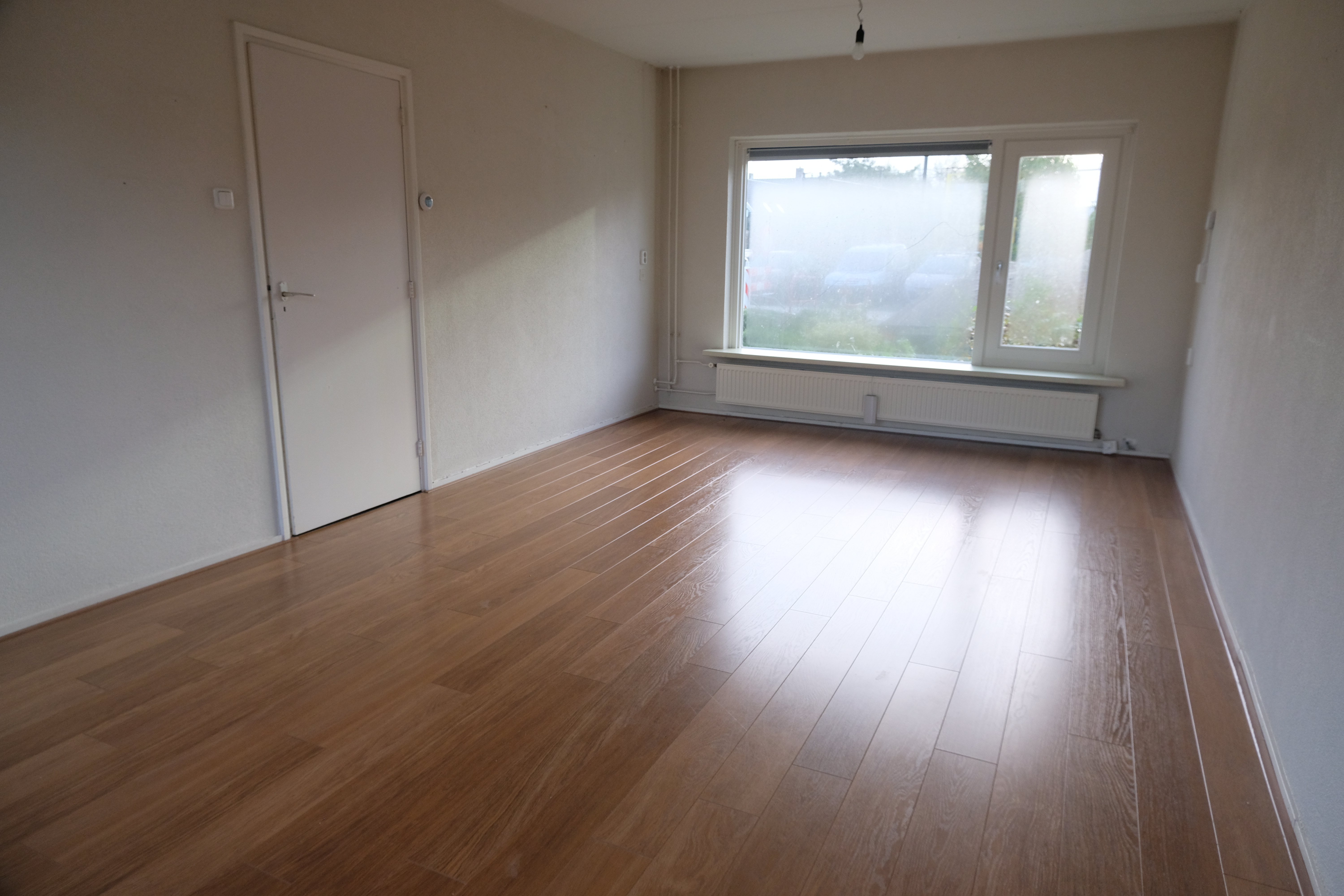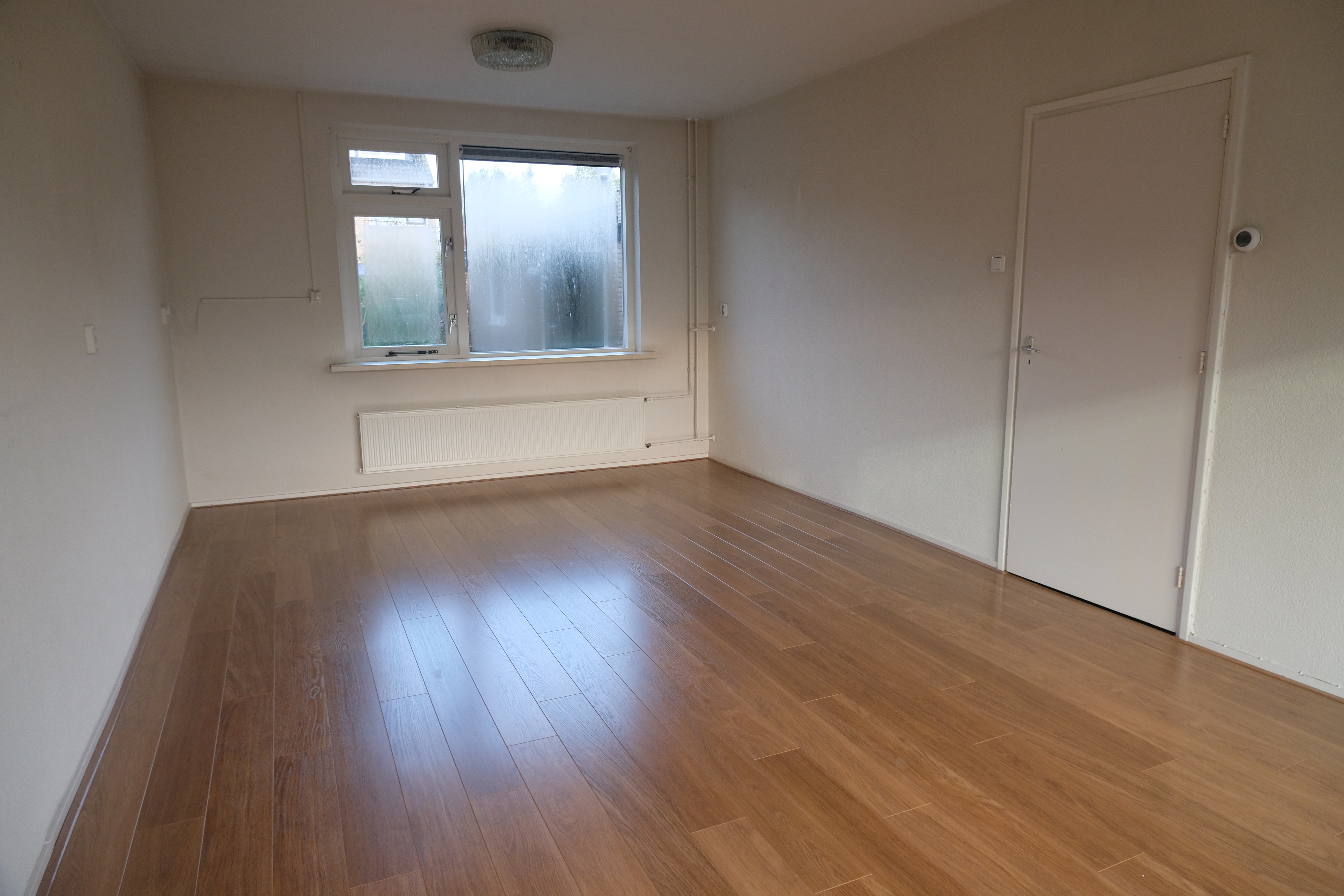 Entree; hal met toilet en meterkast; woonkamer; keuken met deur naar de tuin.